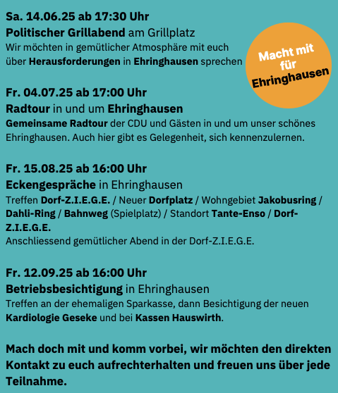 Die nächsten Aktionen der Ortsunion Ehringhausen